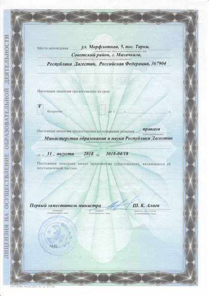 | Адрес местонахождения образовательной организации* | 367904, РД г.Махачкала ул.Морфлотная 5 |